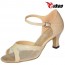 Khaki Satin Woman Dance Shoes 7cm Heel Shoes Salsa Latin Leather Sole Free Shipping Shoes Evkoo-199